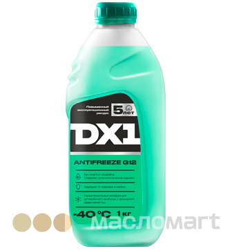 нтифриз торговой марки DX1 изготовлен на основе этиленгликоля и обладает выдающимися антикоррозионными свойствами. Не агрессивен по отношению к резинотехническим изделиям. Отлично смазывает детали системы охлаждения, предотвращает их преждевременный износ. Содержит специальные присадки, предотвращающие вспенивание, благодаря чему исключается перегрев двигателя, присутствие флуоресцирующего красителя позволит легко обнаружить место утечки. Использование антифриза DX1, содержащего сбалансированный пакет присадок, продлевает срок службы деталей системы охлаждения автомобиля в 1,5-2 раза.