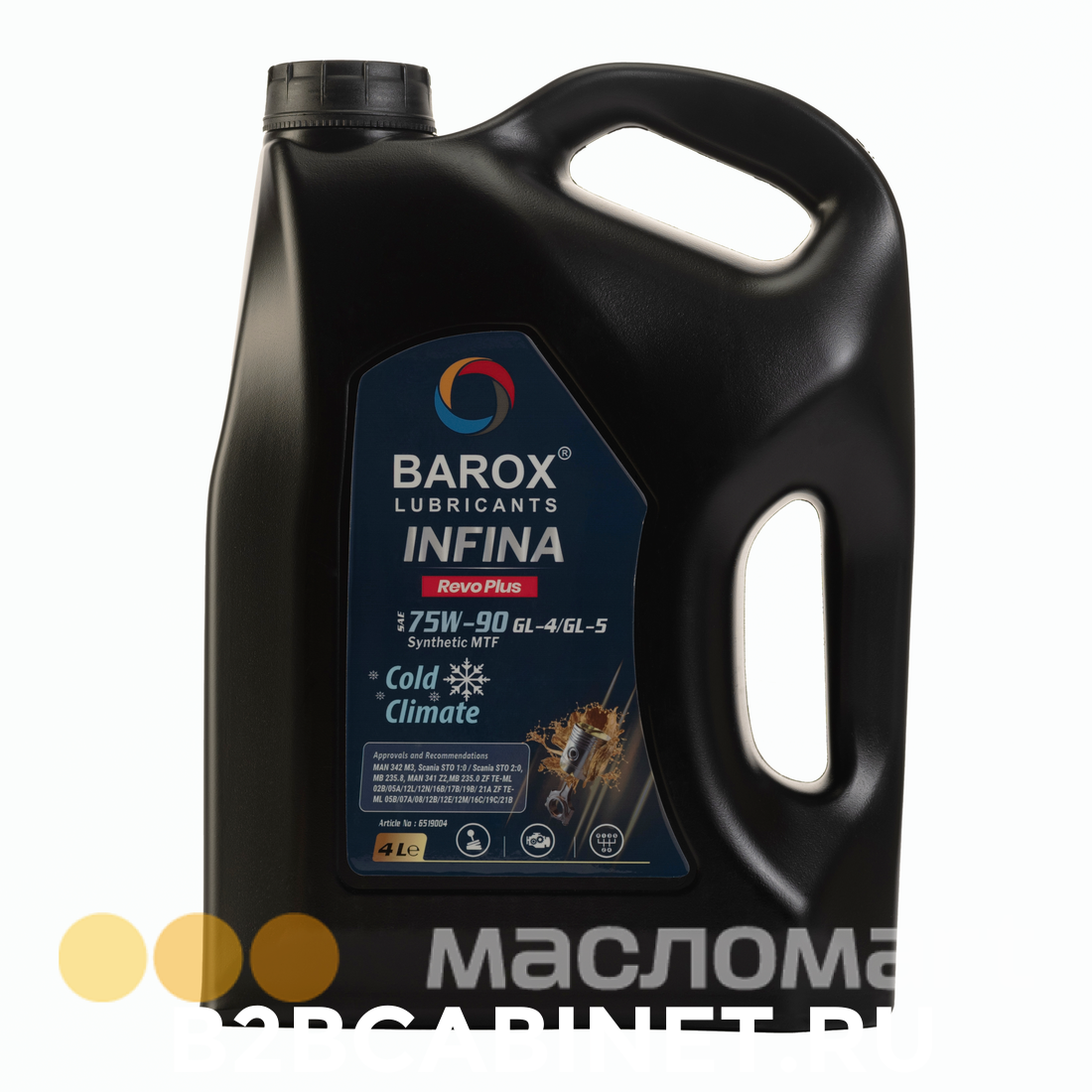 BAROX INFINA REVO PLUS 75W-90 API GL-4/GL-5 — Полностью синтетическое трансмиссионное масло с чрезвычайно высоким запасом прочности. Превосходные эксплуатационные характеристики в холодном состоянии и стабильность к окислению. Обеспечивает безупречную работу агрегатов даже в самых сложных условиях и при больших перепадах температур. Минимизирует износ. Выдающиеся температурные характеристики вязкости. Обеспечивает длительные интервалы замены масла. Специально разработано для холодного климата.