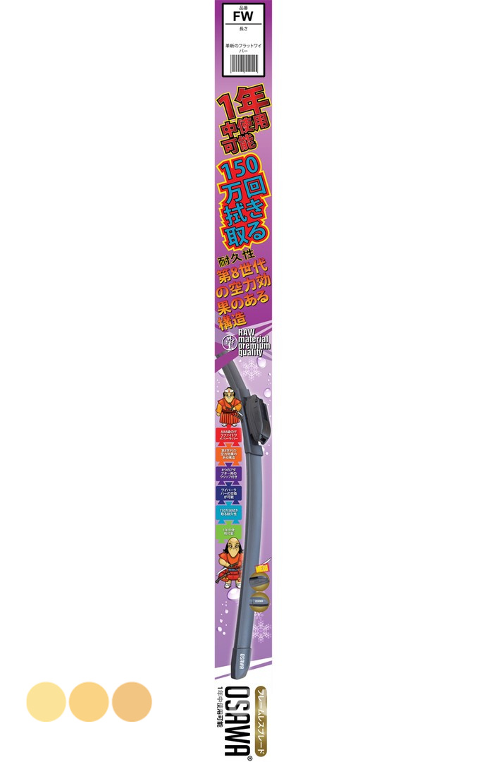 Это последнее 8-е поколение бескаркасных щеток стеклоочистителя. Небольшой вес, улучшенная аэродинамика и чистящая лента с графитовой пропиткой.Технология графитовой пропитки более дорогостоящая и долговечная, чем графитовое напыление. Лента сменная, класса "ААА", максимальная по японской классификации, обеспечивает до 1.500.000 взмахов по лобовому стеклу. Обновленная конструкция мультикрепления гарантирует надежную фиксацию щетки на все виды автомобильных поводков через 8 оригинальных адаптеров (есть в наличии). Щетки стеклоочистителей Osawa производятся на заводах NWB (Япония).