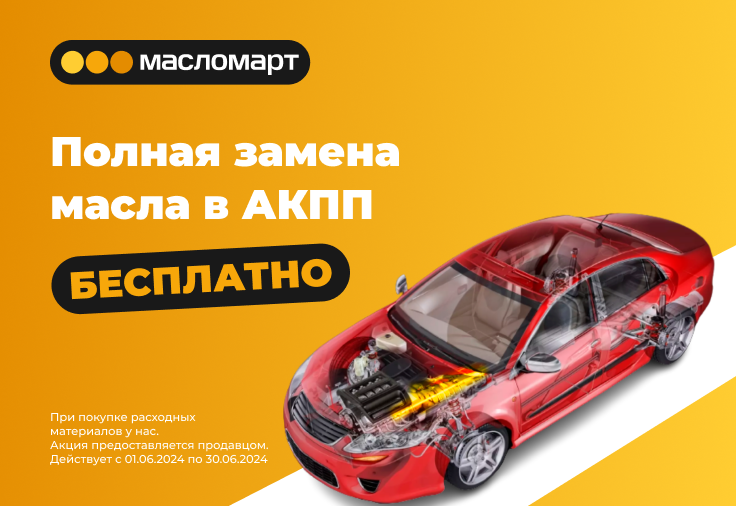 Воспользуйтесь уникальным предложением от Масломарт! В течение июня 2024 года мы проводим акцию "Полная замена масла в АКПП и вариаторе". При покупке трансмиссионного масла у нас, вы получаете услугу по его замене абсолютно БЕСПЛАТНО!